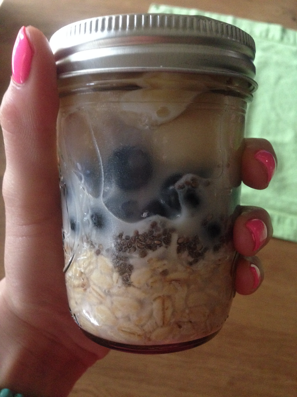 En un tupper chico o mason jar mezcla todos los ingredientes, refrigeralo toda la noche y al día siguiente esta listo para llevar.